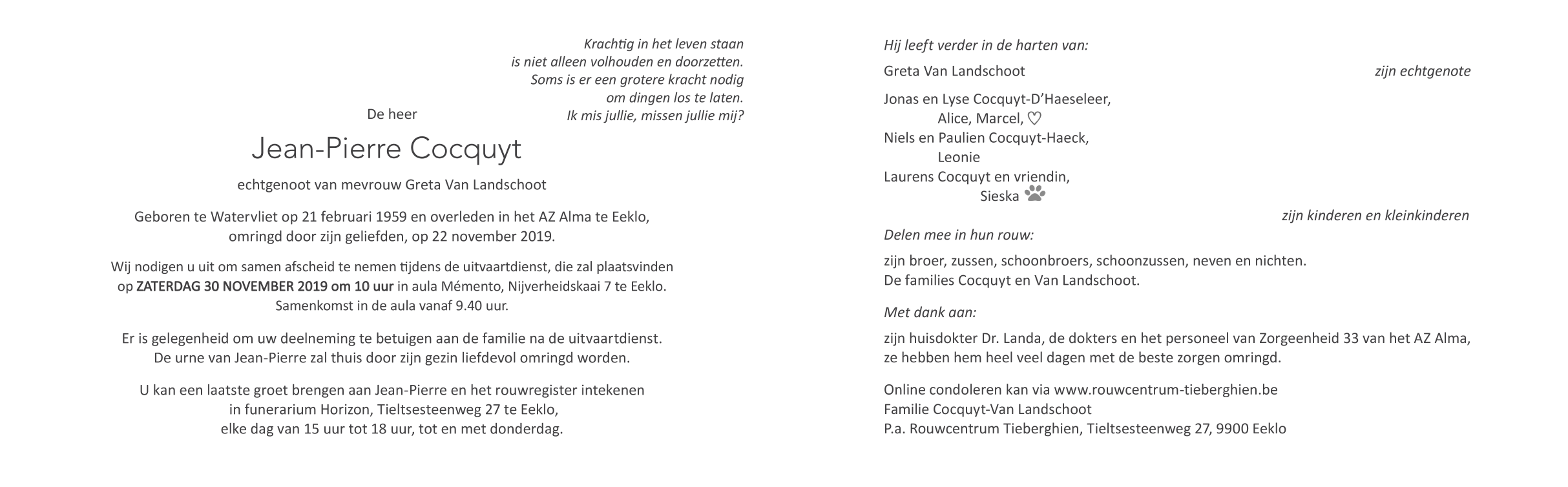 Echtgenoot van Mevrouw Greta Van Landschoot