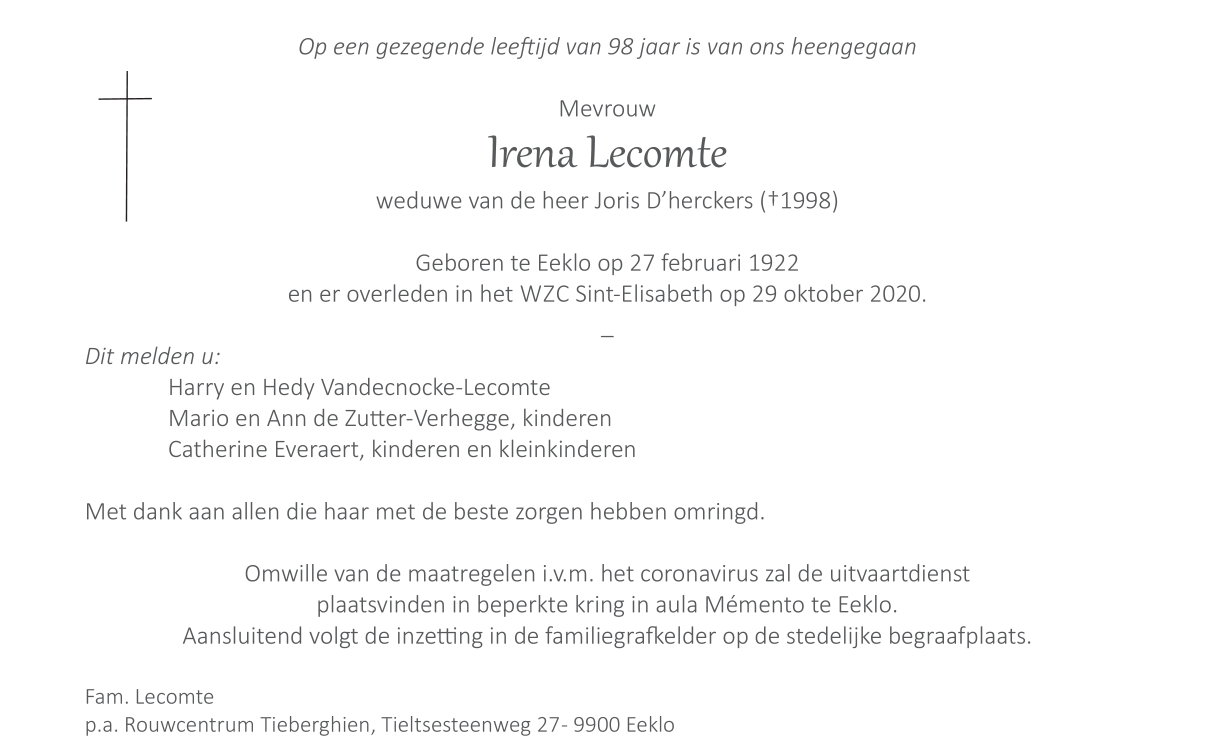 op donderdag 29 oktober 2020 op 98-jarige leeftijd