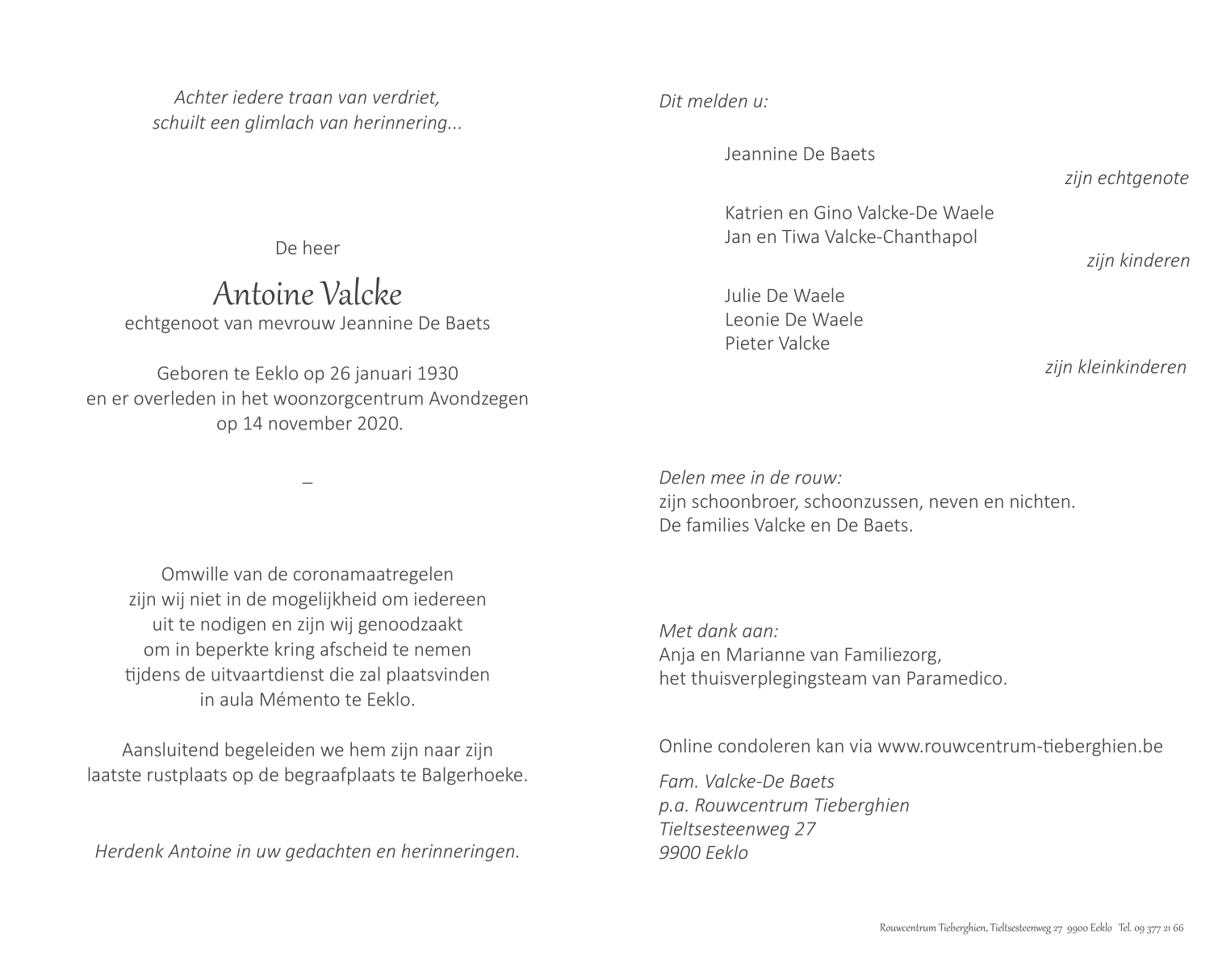 op zaterdag 14 november 2020 op 90-jarige leeftijd