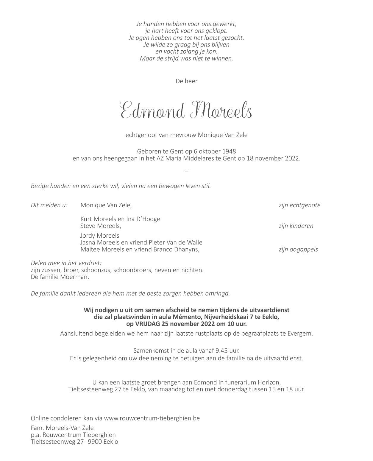 Overleden te Gent (9000) op vrijdag 18 november 2022 op 74-jarige leeftijd