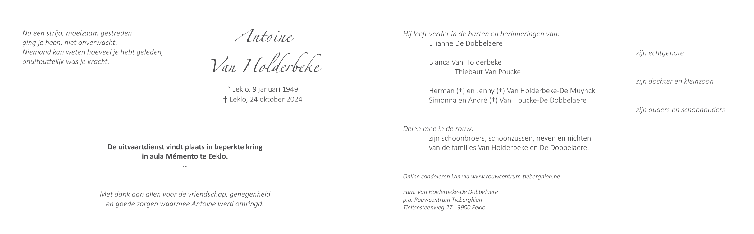 Overleden te Eeklo (9900) op donderdag 24 oktober 2024 op 75-jarige leeftijd