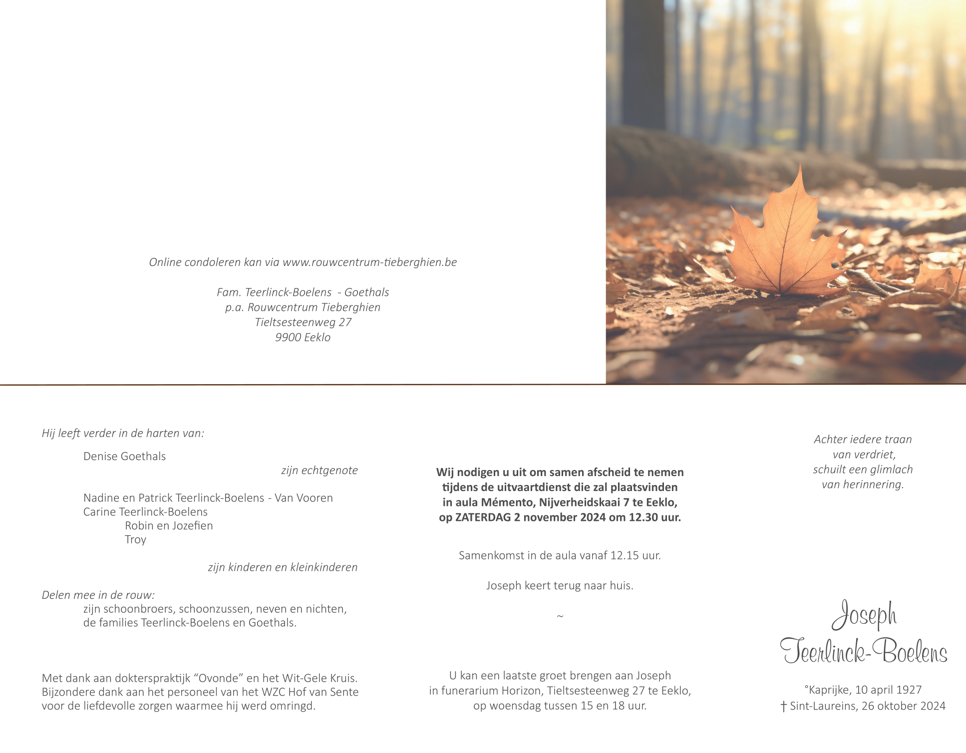 Overleden te Sint-Laureins (9980) op zaterdag 26 oktober 2024 op 97-jarige leeftijd