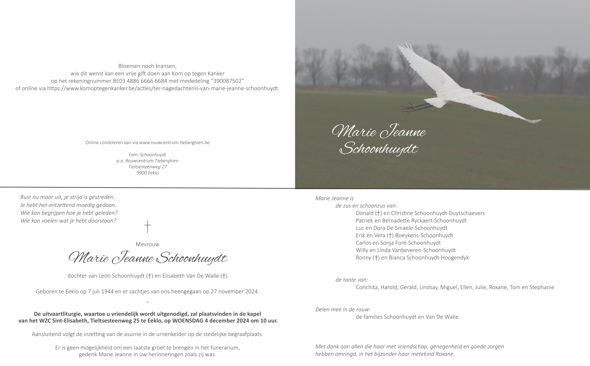 Overleden te Eeklo (9900) op woensdag 27 november 2024 op 80-jarige leeftijd