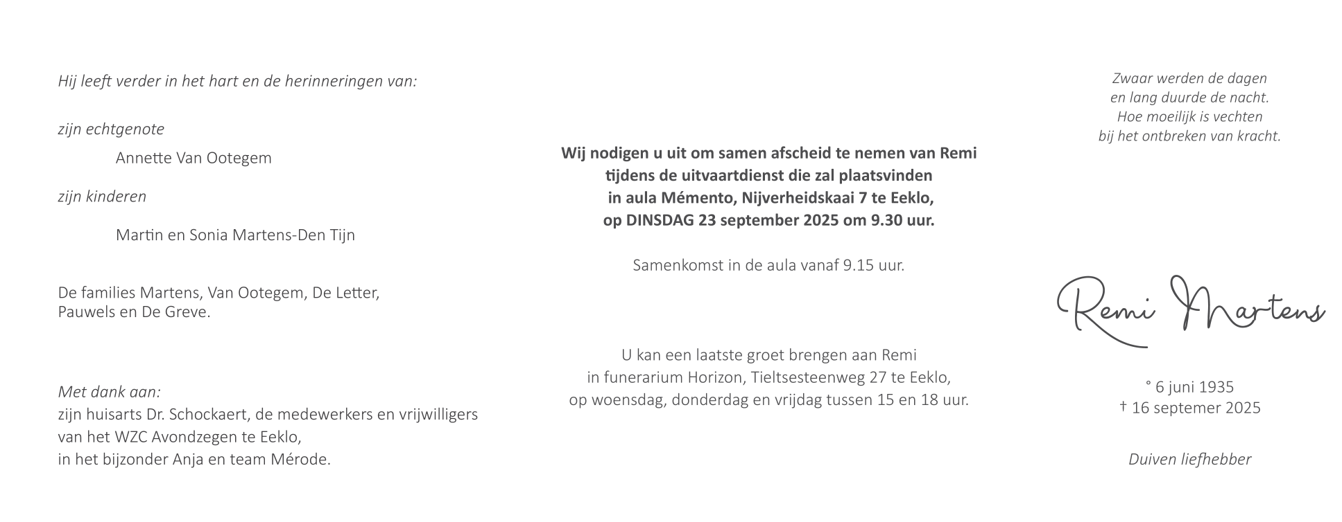 Overleden te Eeklo (9900) op dinsdag 16 september 2025 op 90-jarige leeftijd