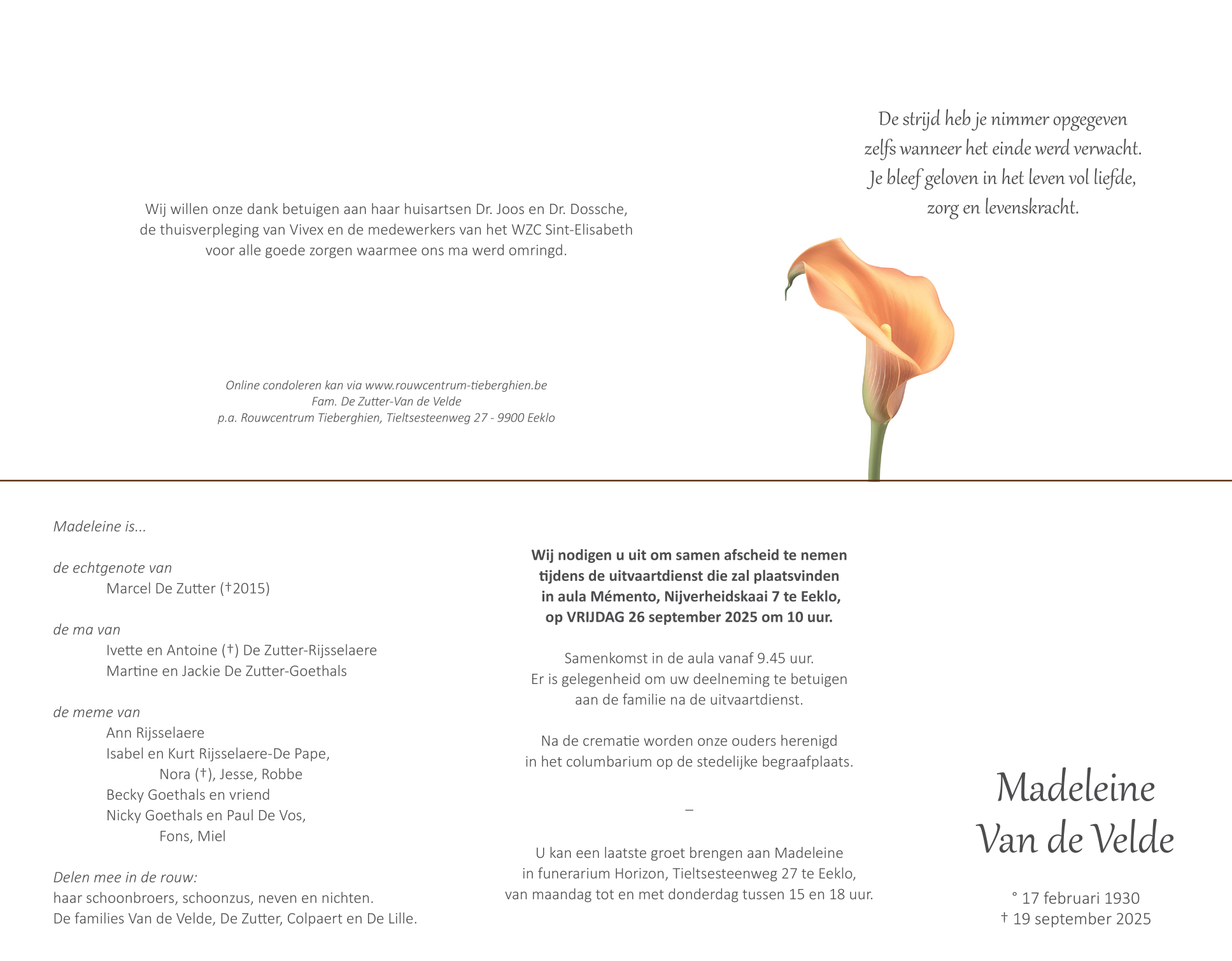Overleden te Eeklo (9900) op vrijdag 19 september 2025 op 95-jarige leeftijd