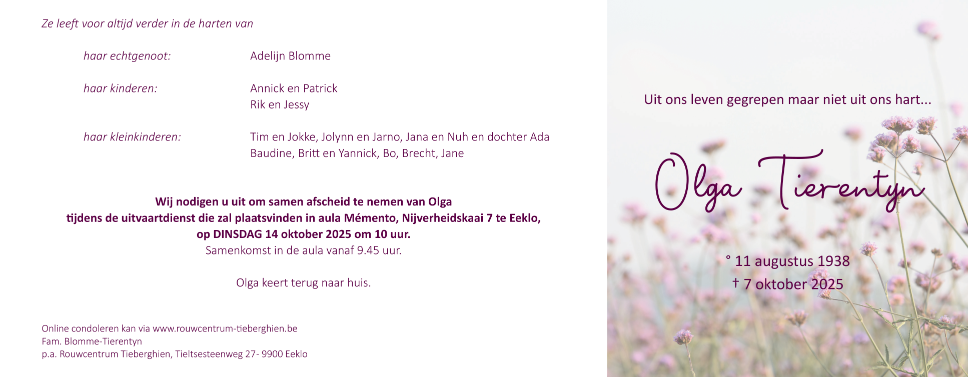 Overleden te Adegem (9991) op dinsdag 7 oktober 2025 op 87-jarige leeftijd