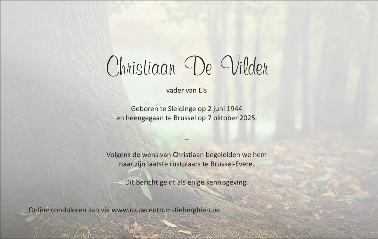 Overleden te Brussel (1000) op dinsdag 7 oktober 2025 op 81-jarige leeftijd