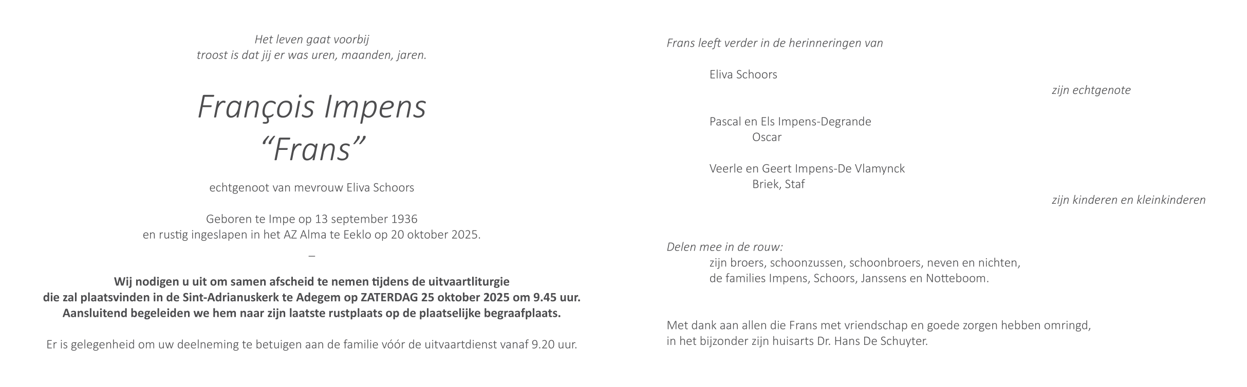 Overleden te Eeklo (9900) op maandag 20 oktober 2025 op 89-jarige leeftijd