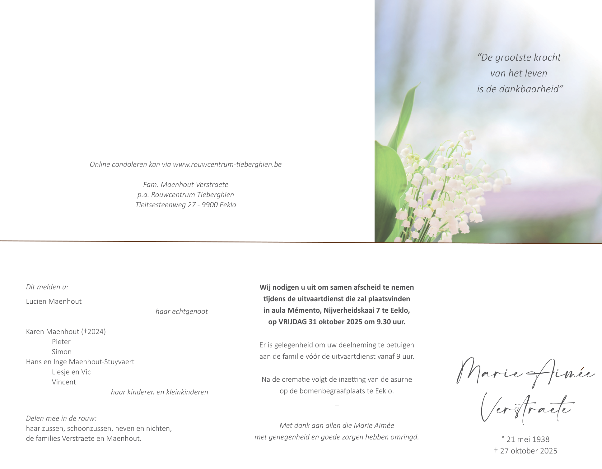 Overleden te Eeklo (9900) op maandag 27 oktober 2025 op 87-jarige leeftijd