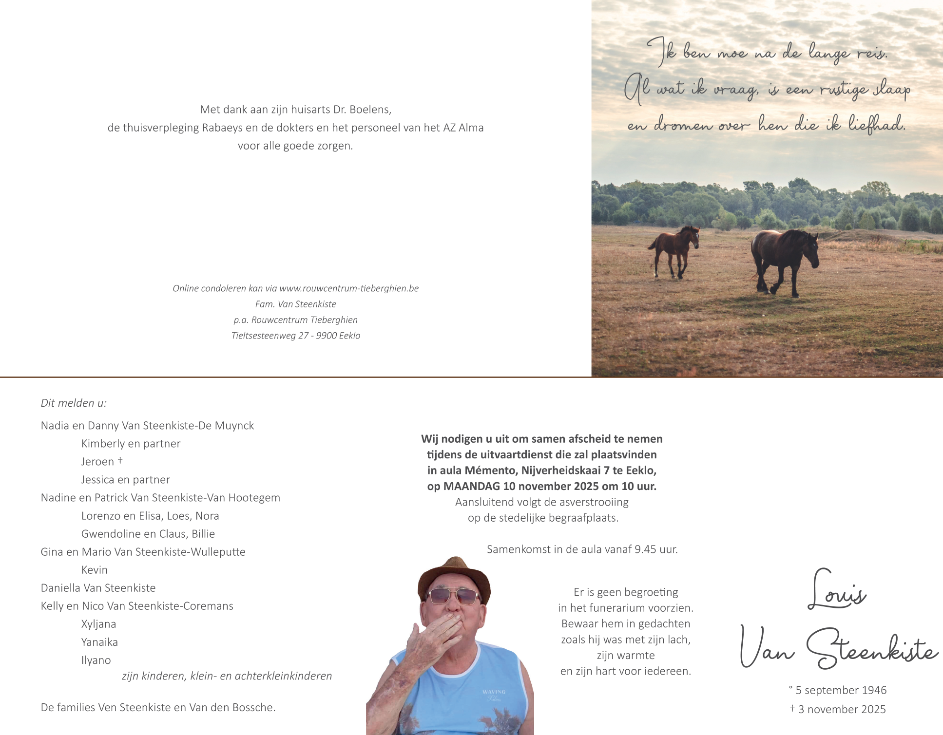 Overleden te Eeklo (9900) op maandag 3 november 2025 op 79-jarige leeftijd