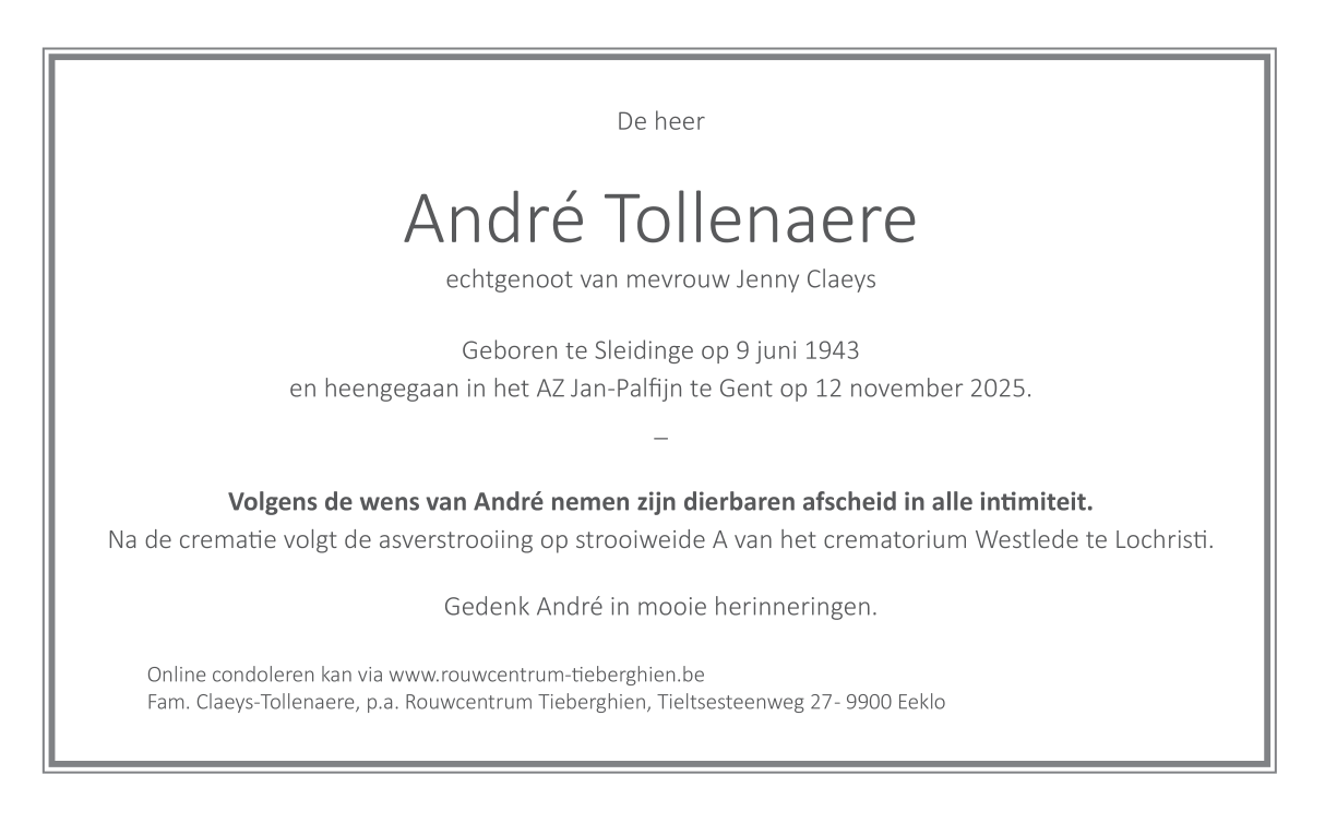 Overleden te Gent (9000) op woensdag 12 november 2025 op 82-jarige leeftijd