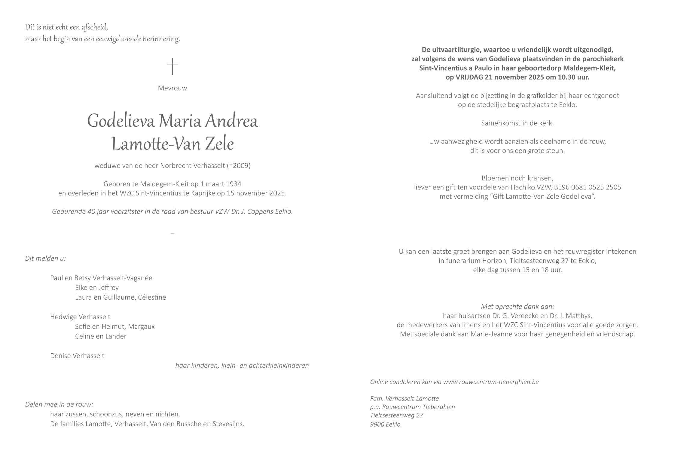 Overleden te Kaprijke (9970) op zaterdag 15 november 2025 op 91-jarige leeftijd
