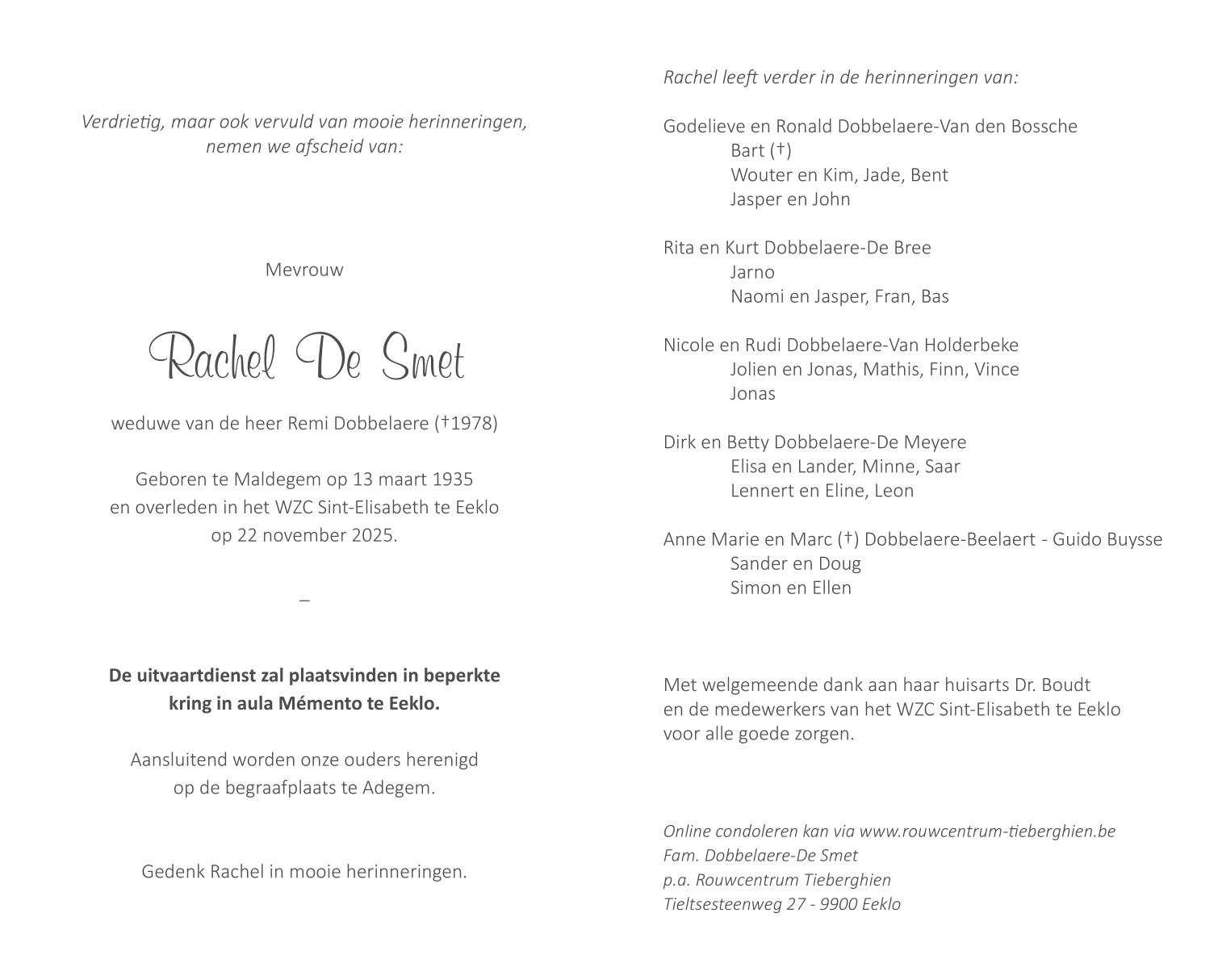 Overleden te Eeklo (9900) op zaterdag 22 november 2025 op 90-jarige leeftijd
