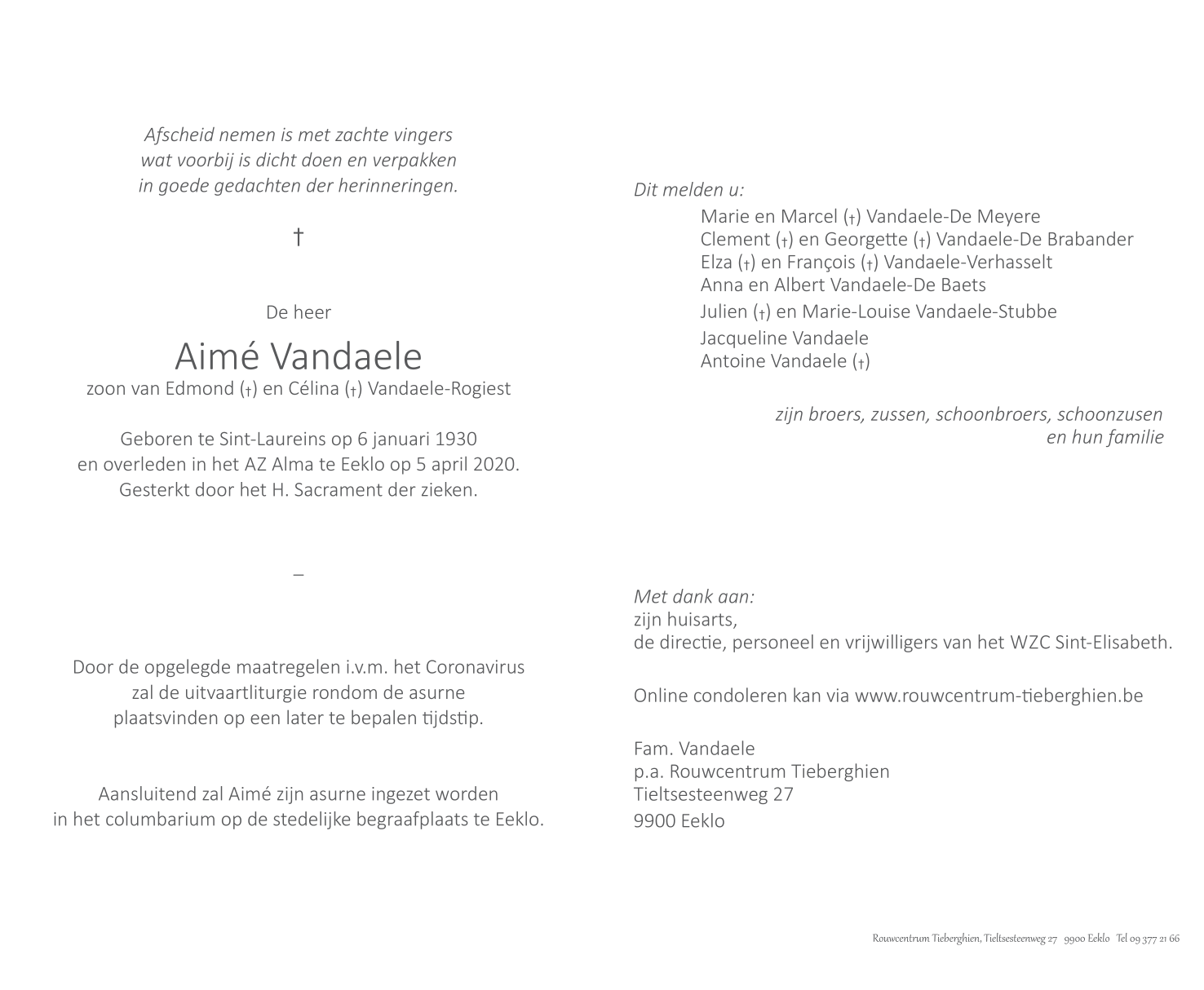 Overleden te Eeklo