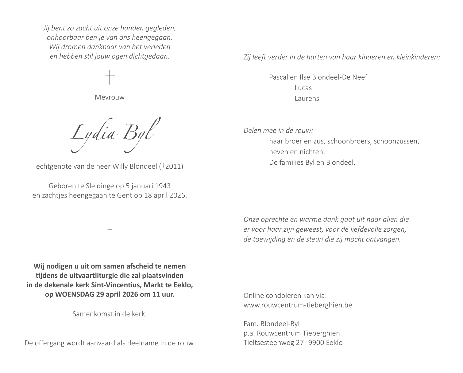 Overleden te Gent (9000) op zaterdag 18 april 2026 op 83-jarige leeftijd