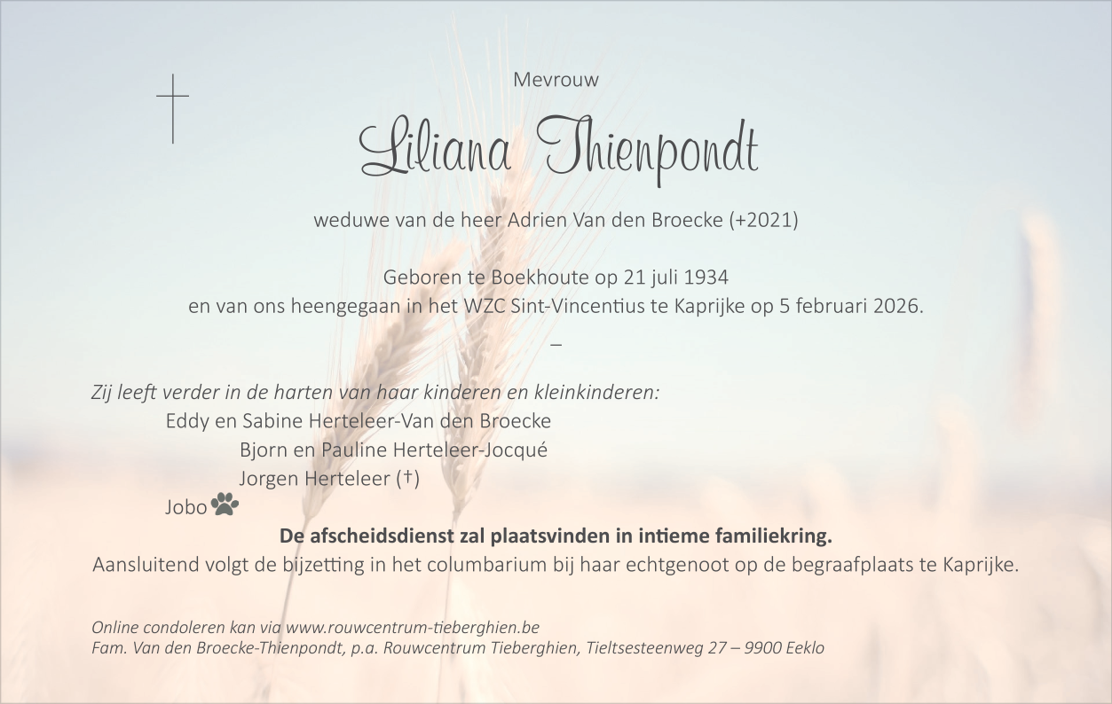 Overleden te Kaprijke (9971) op donderdag 5 februari 2026 op 91-jarige leeftijd