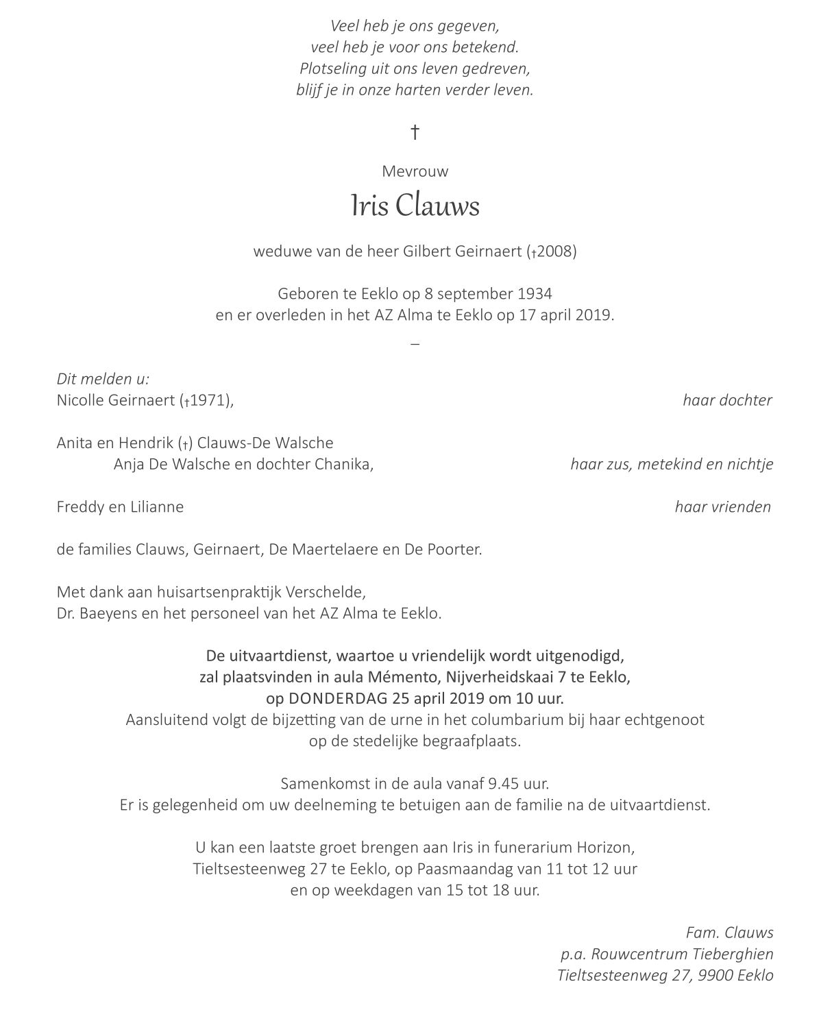 Overleden te Eeklo