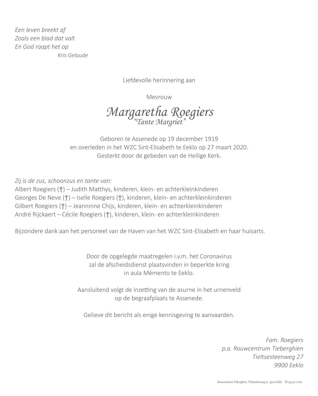 Mevrouw Margaretha Roegiers