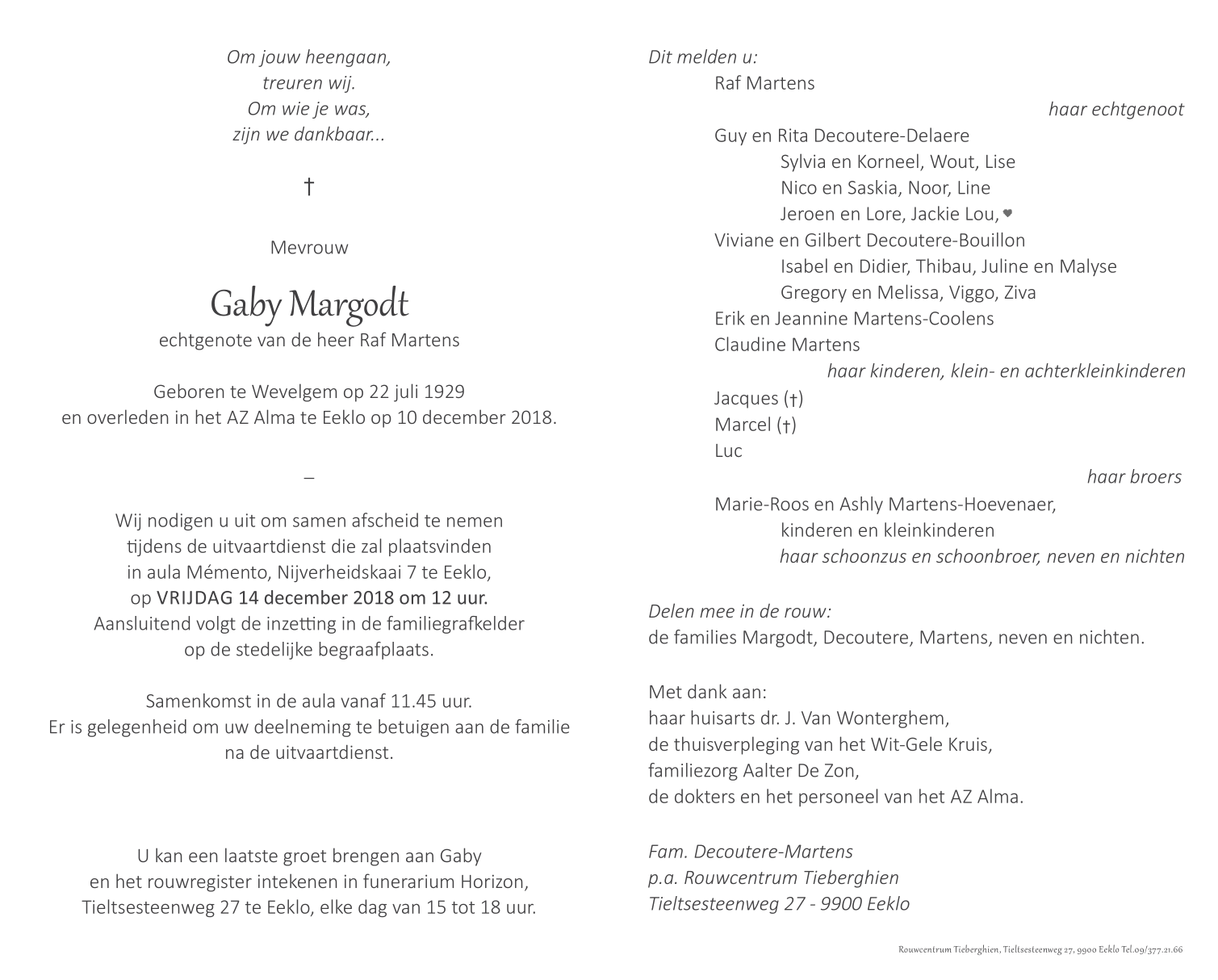 Echtgenote van De heer Raf Martens