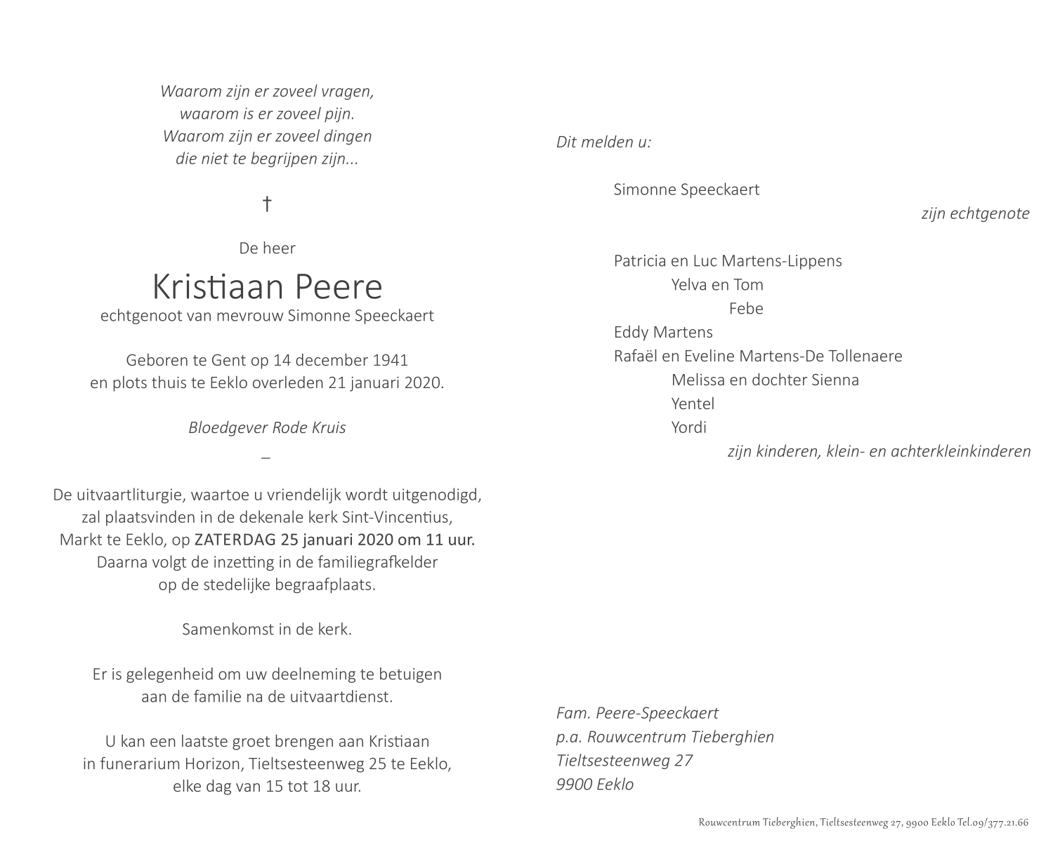 Echtgenoot van Mevrouw Simonne Speeckaert