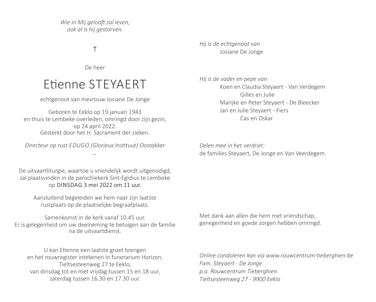 De heer Etienne Steyaert