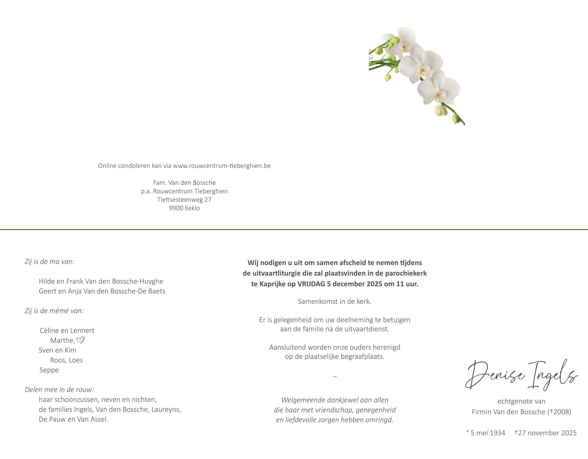 Weduwe van De heer Firmin Van den Bossche