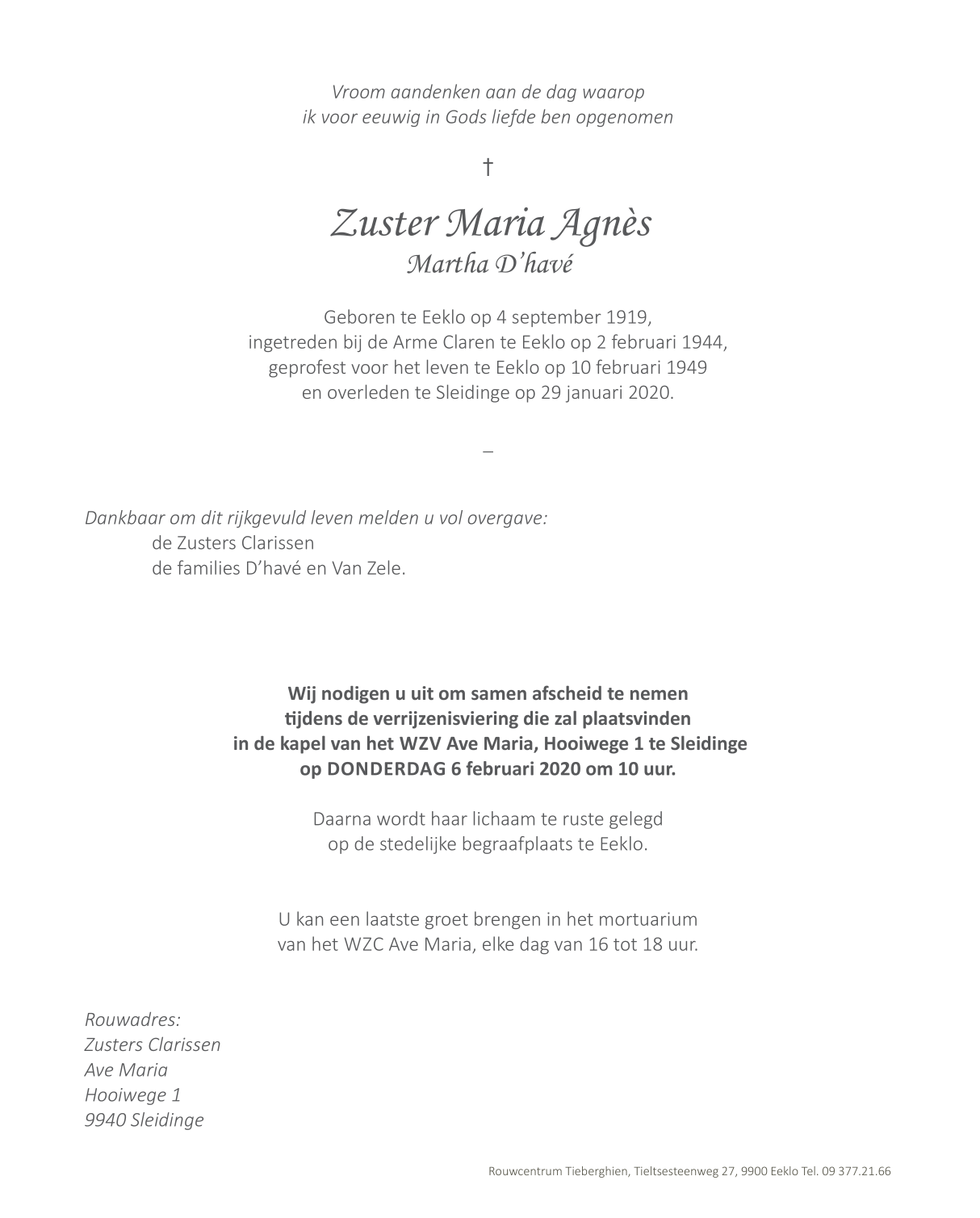 op woensdag 29 januari 2020 op 100-jarige leeftijd