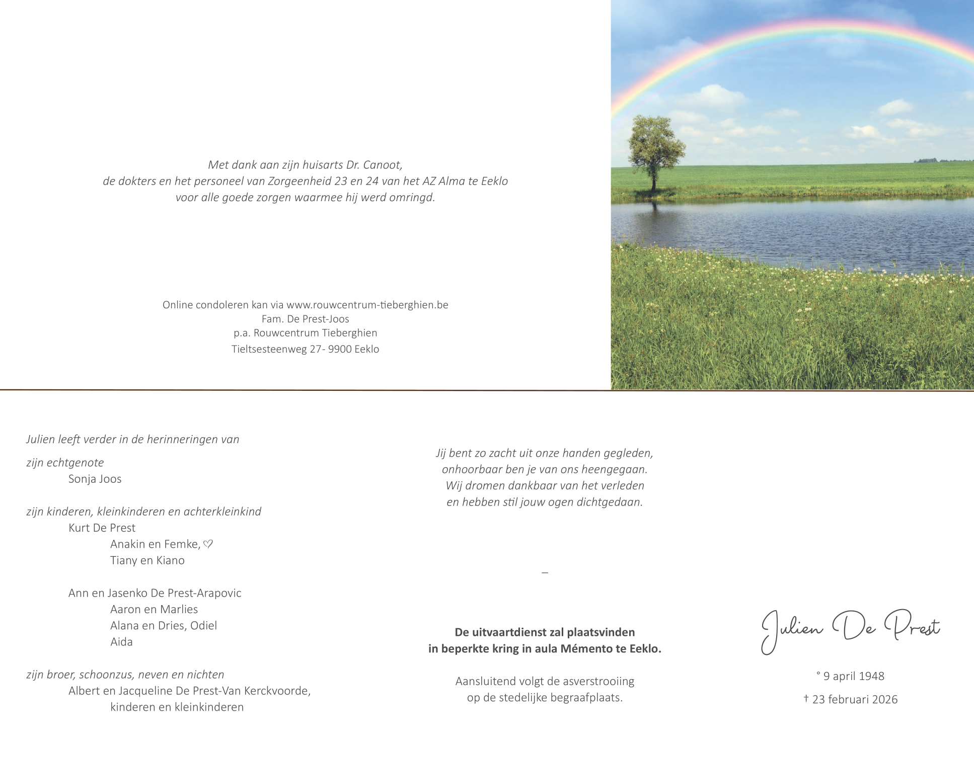 Overleden te Eeklo (9900) op maandag 23 februari 2026 op 77-jarige leeftijd
