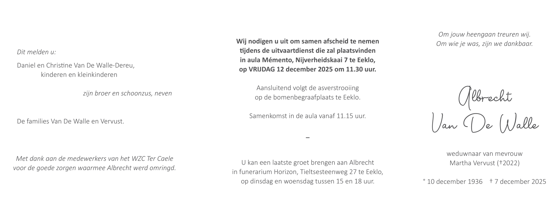 Weduwnaar van Mevrouw Martha Vervust
