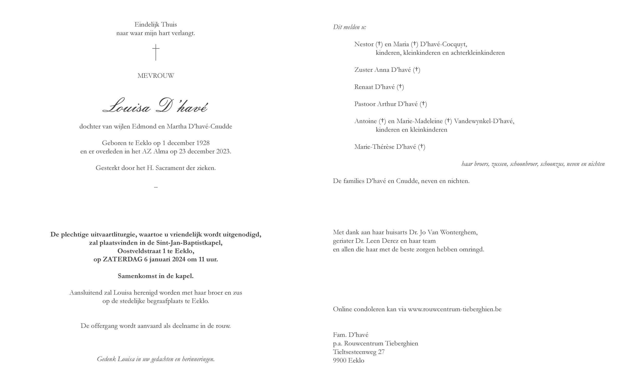 Overleden te Eeklo (9900) op zaterdag 23 december 2023 op 95-jarige leeftijd