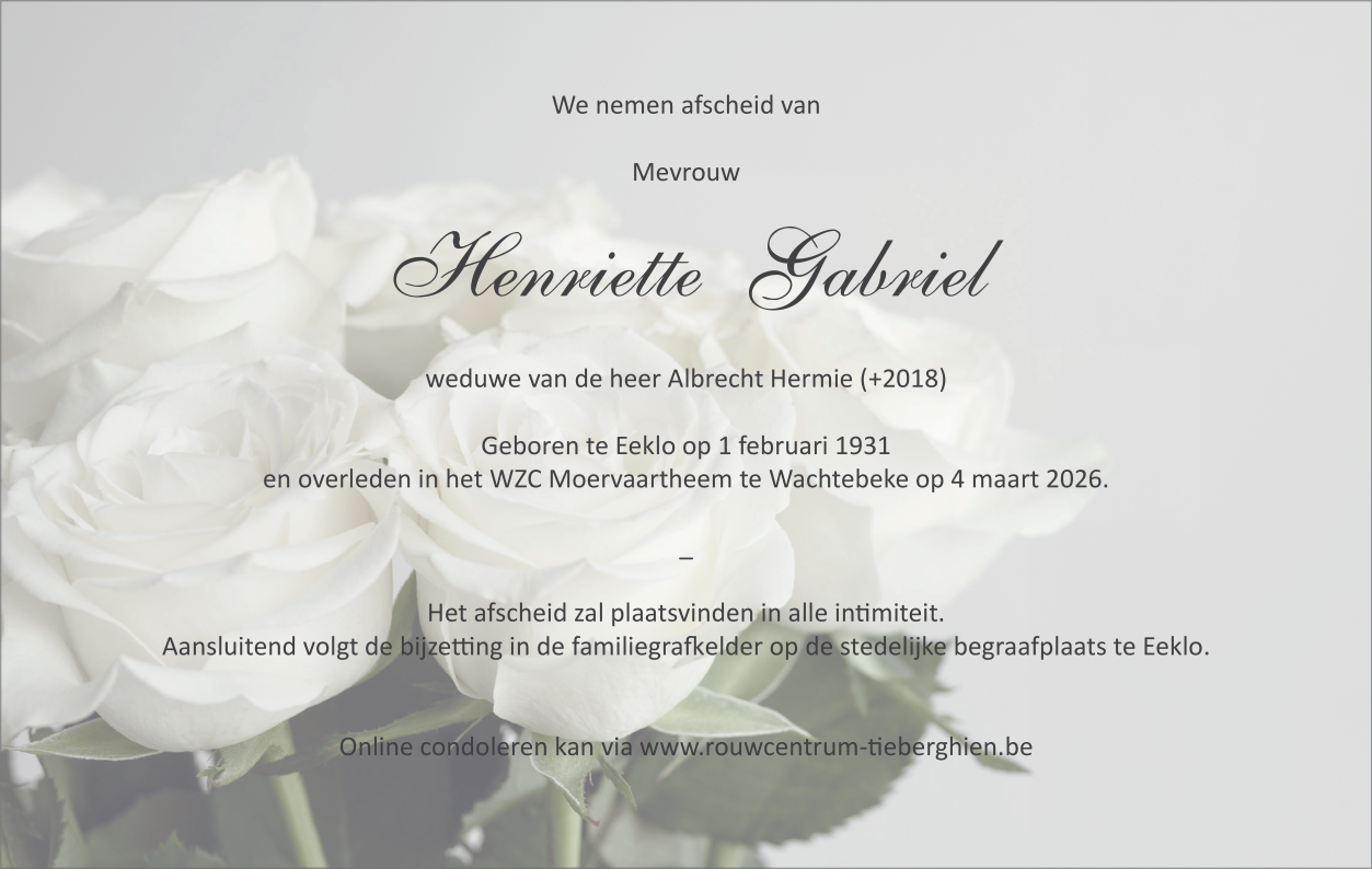 Overleden te Wachtebeke (9185) op woensdag 4 maart 2026 op 95-jarige leeftijd