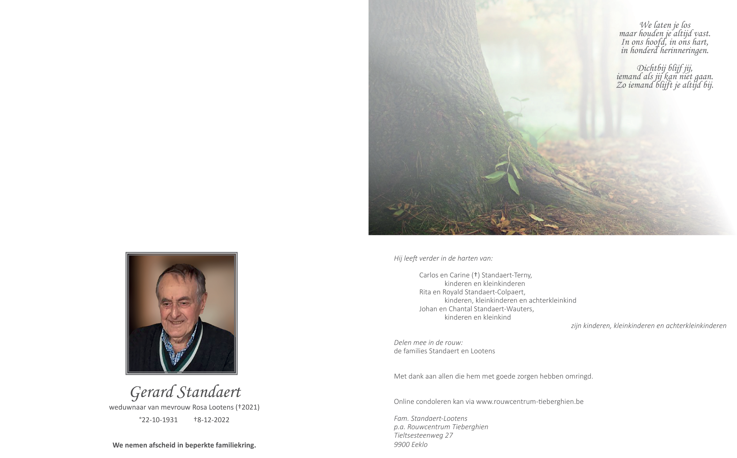 Weduwnaar van Mevrouw Rosa Lootens (+2021)