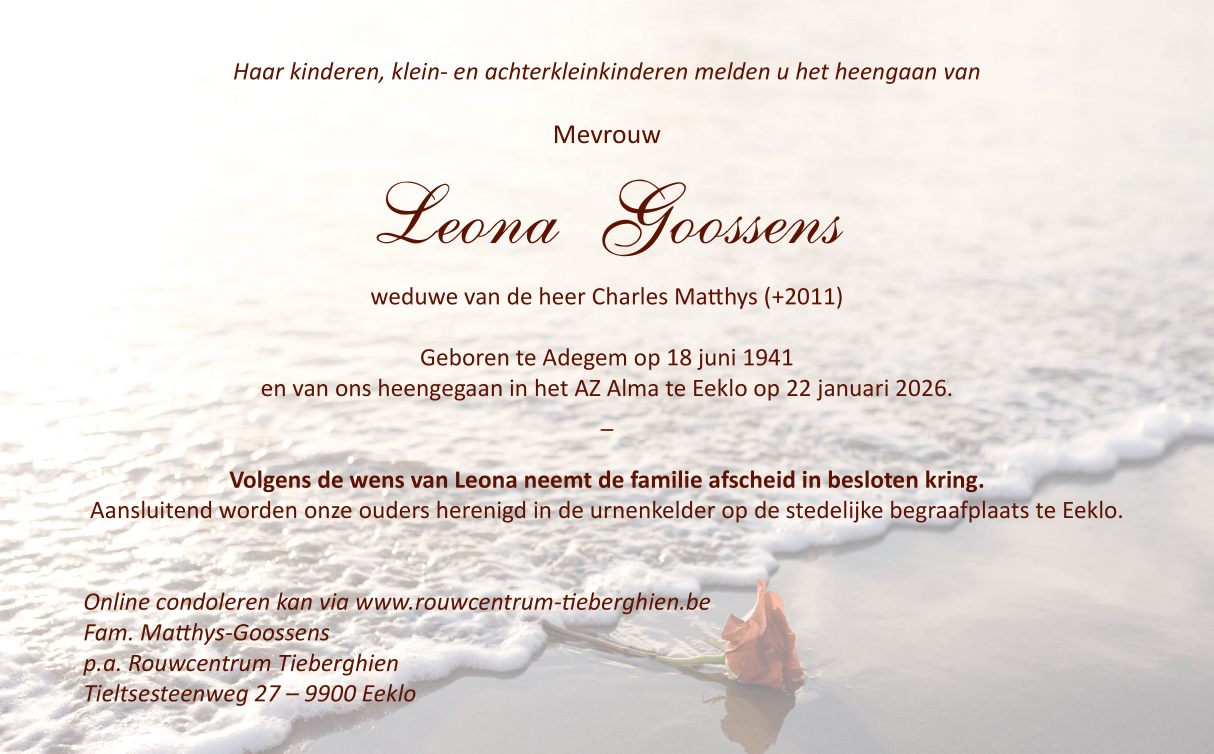 Overleden te Eeklo (9900) op donderdag 22 januari 2026 op 84-jarige leeftijd
