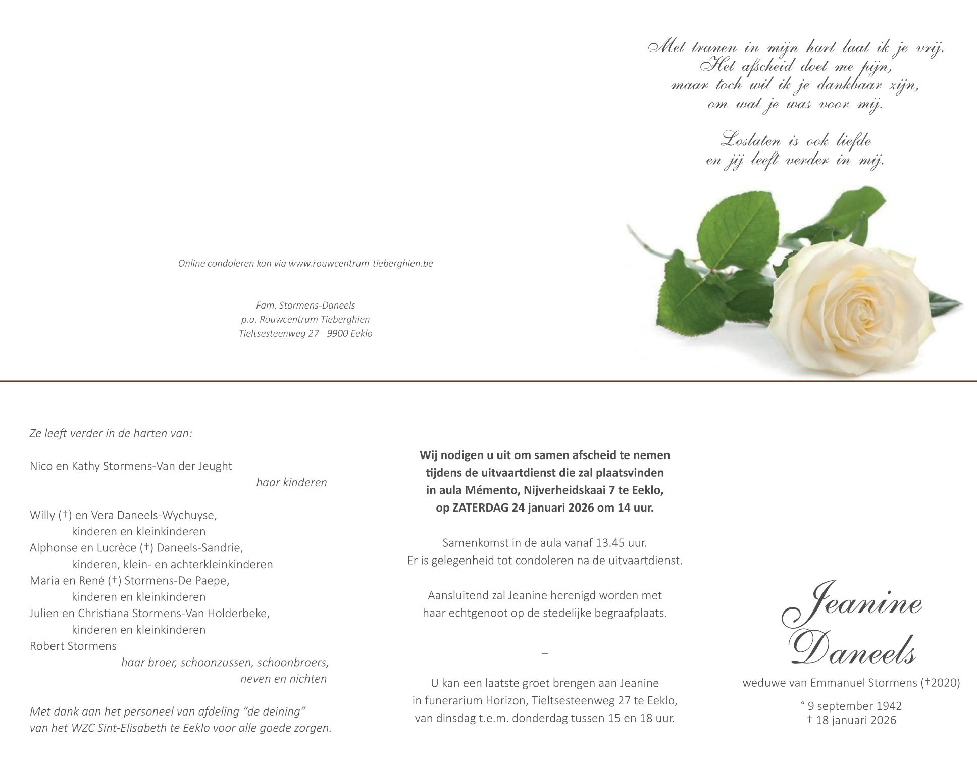 Overleden te Eeklo (9900) op zondag 18 januari 2026 op 83-jarige leeftijd