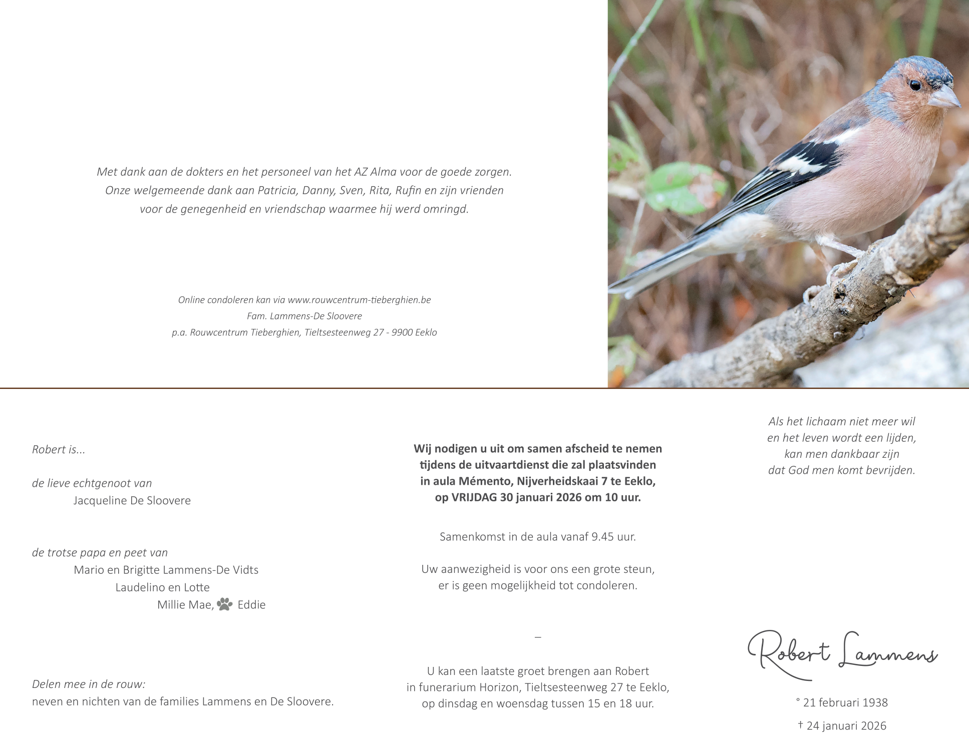 Overleden te Eeklo (9900) op zaterdag 24 januari 2026 op 87-jarige leeftijd