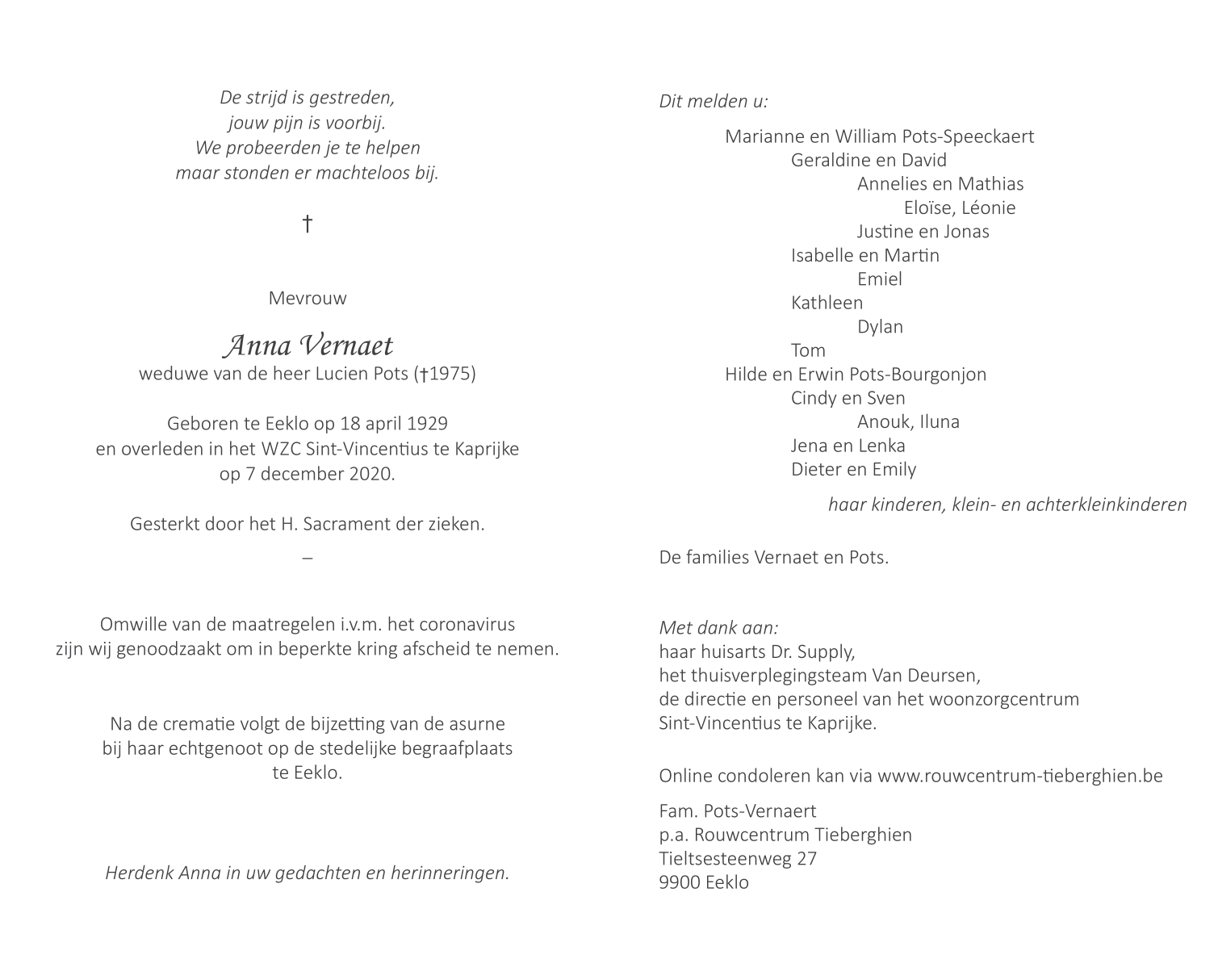 op maandag 7 december 2020 op 91-jarige leeftijd