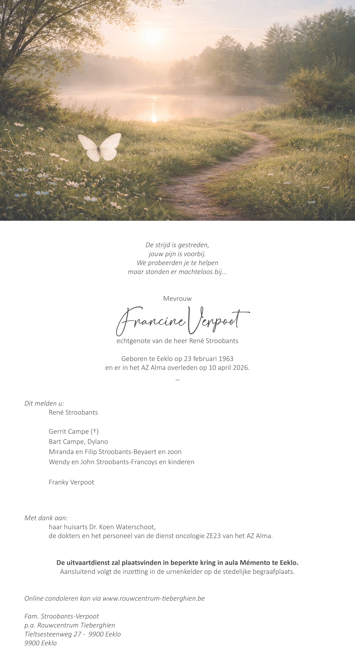 Overleden te Eeklo (9900) op vrijdag 10 april 2026 op 63-jarige leeftijd