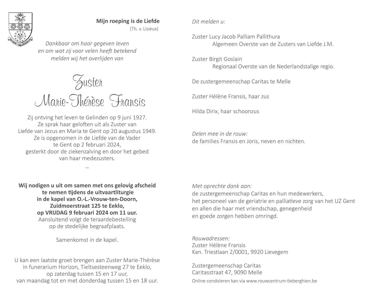 Zuster Marie-Thérèse Fransis