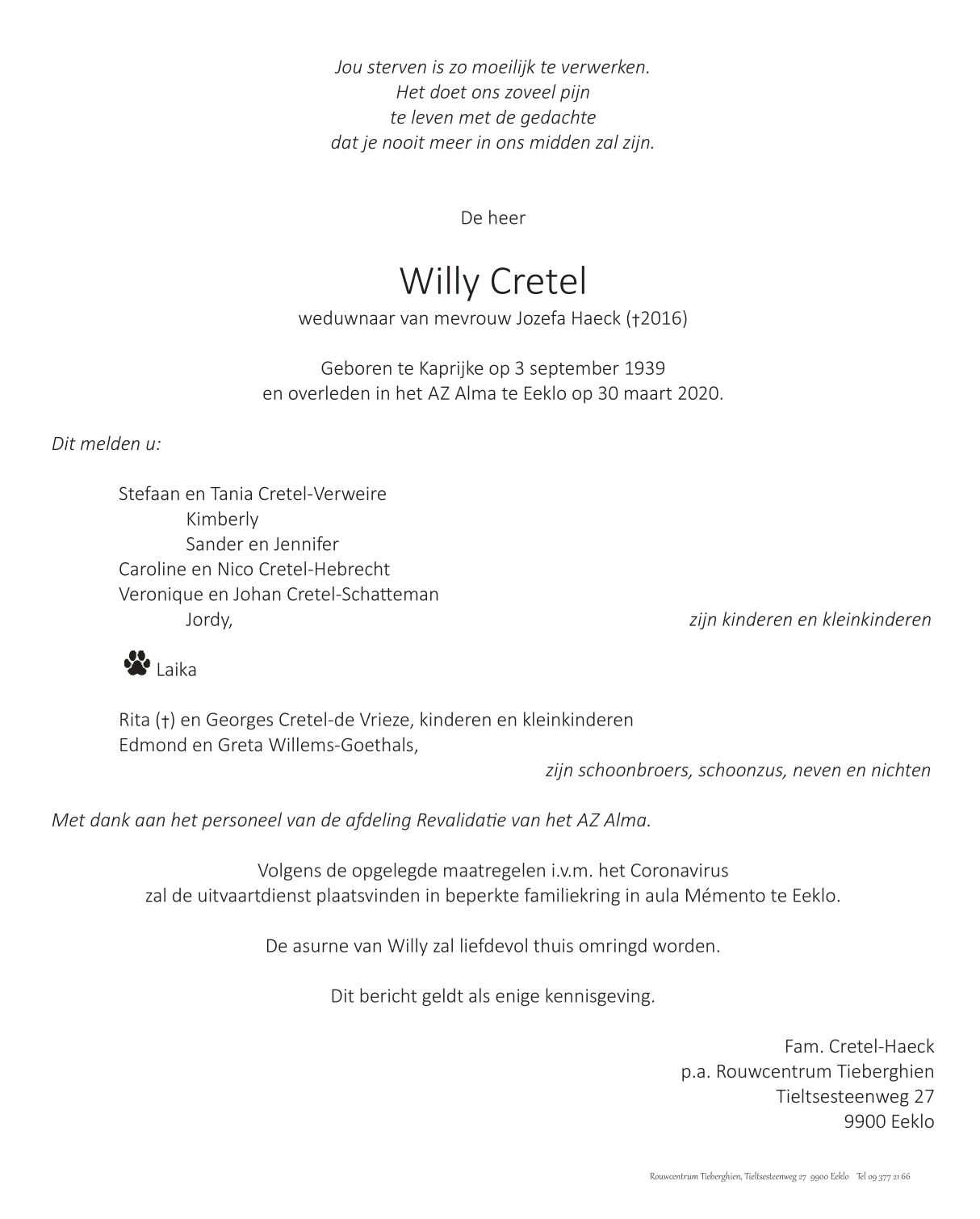 De heer Willy Cretel
