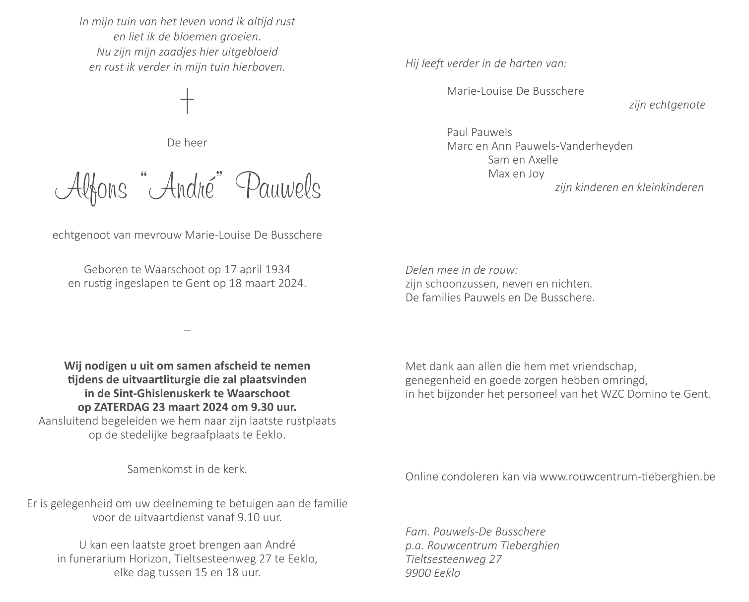 Geboren te Waarschoot (9950) op dinsdag 17 april 1934