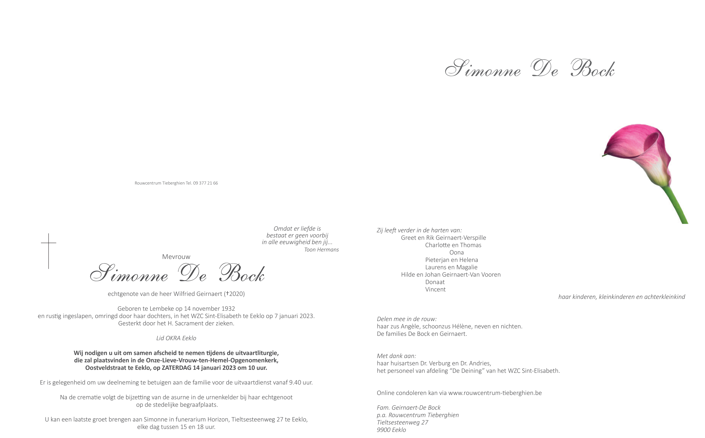 Weduwe van De heer Wilfried Geirnaert (+2020)