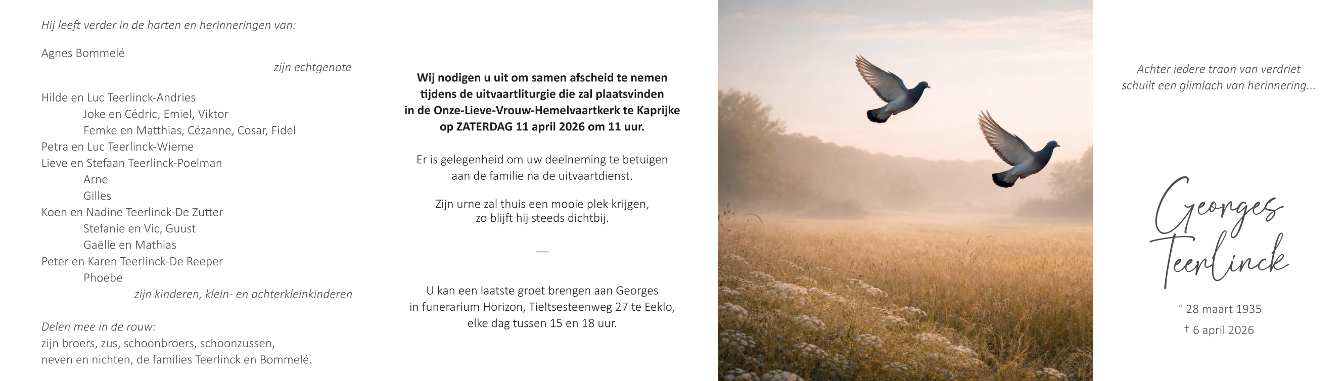 Overleden te Kaprijke (9970) op maandag 6 april 2026 op 91-jarige leeftijd