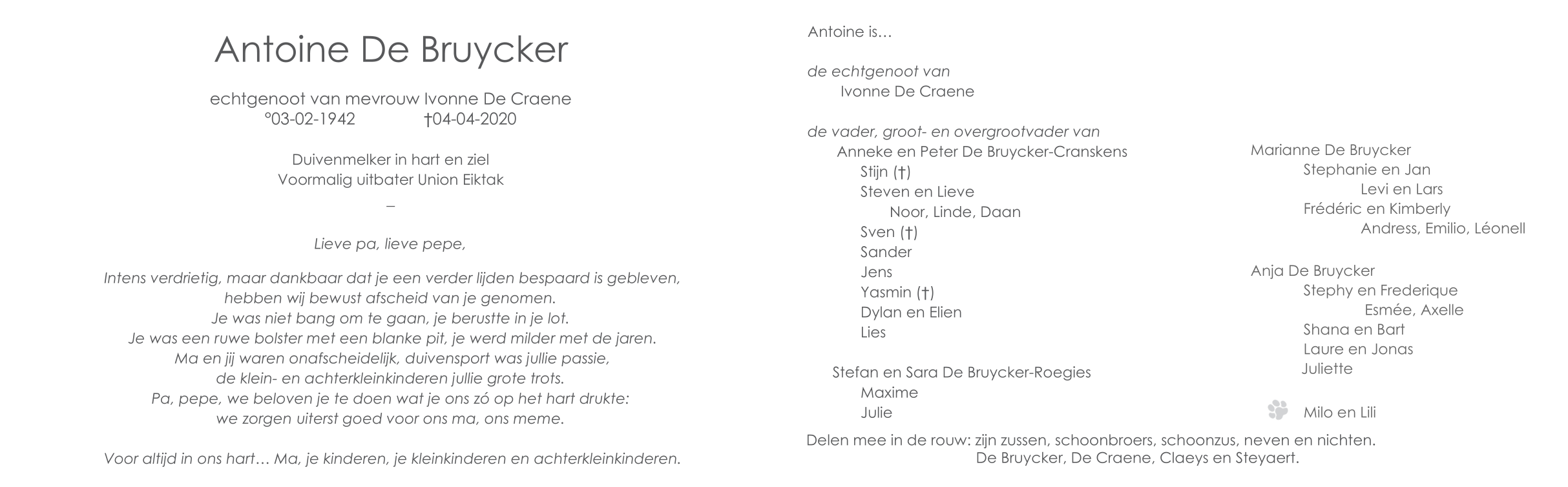 Echtgenoot van Mevrouw Ivonne De Craene